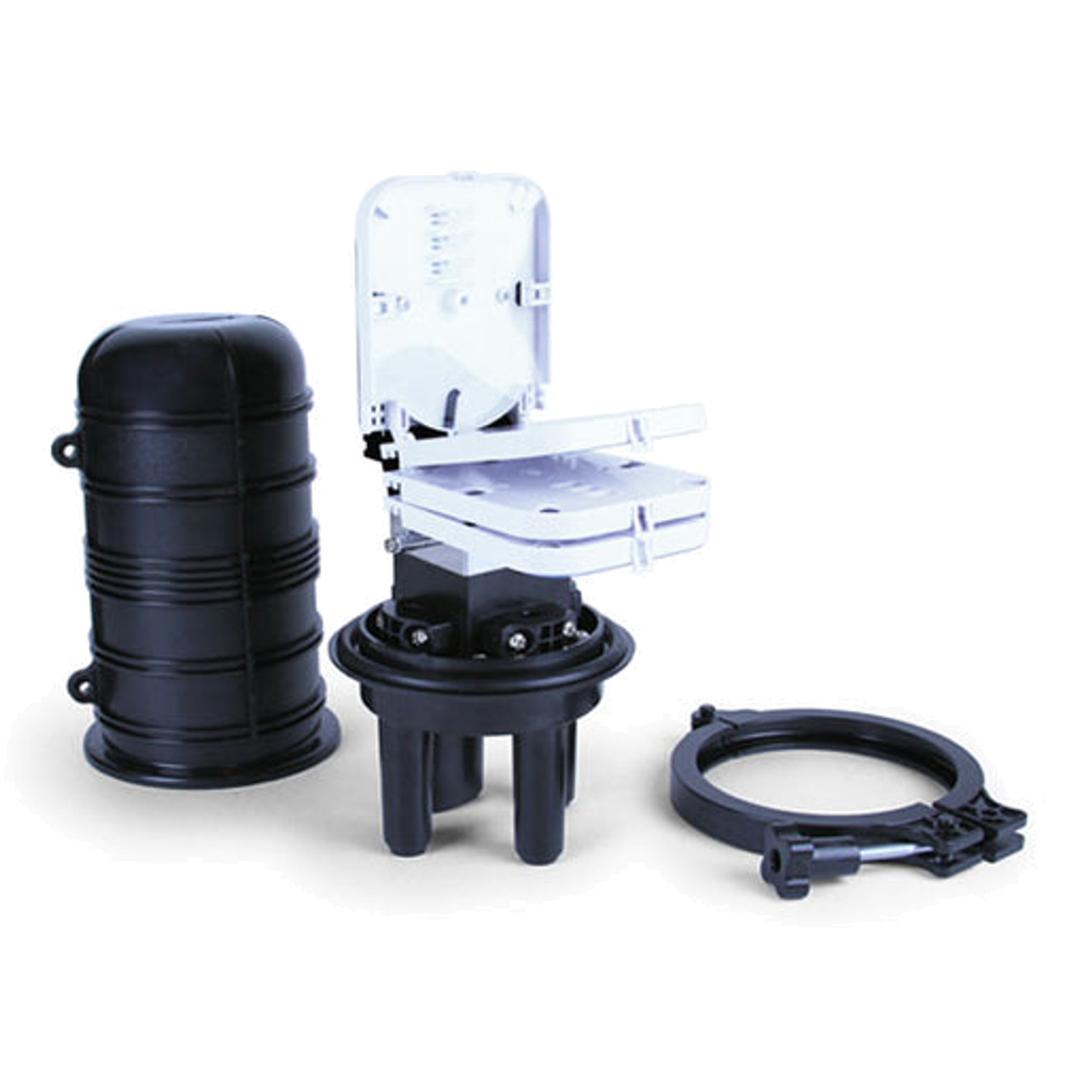 The 48 splice fiber optic dome closure is a multi application, IP67 rated weather resistant solution for protecting fiber outdoors. The closure and foundation are sealed with silicon gum, and cable entry sealed with heat shrink tubing. All major hardware is factory installed to allow for quick field installation.